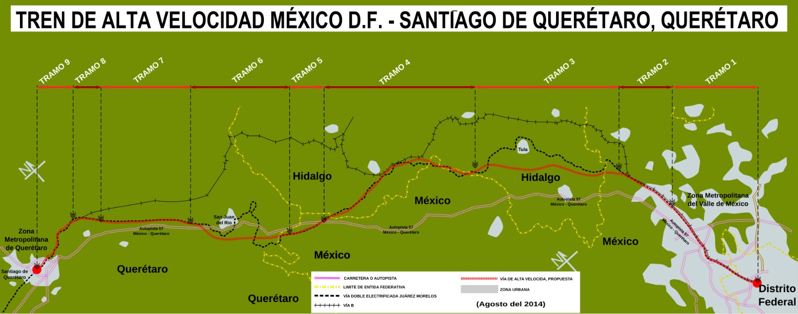De esta vía solo se logró construir el tramo entre el Distrito Federal y la ciudad de Santiago de Querétaro, la llamada Vía Doble Electrificada México–Querétaro, inaugurada el 14 de febrero de 1994 durante el gobierno de Carlos Salinas de Gortari.